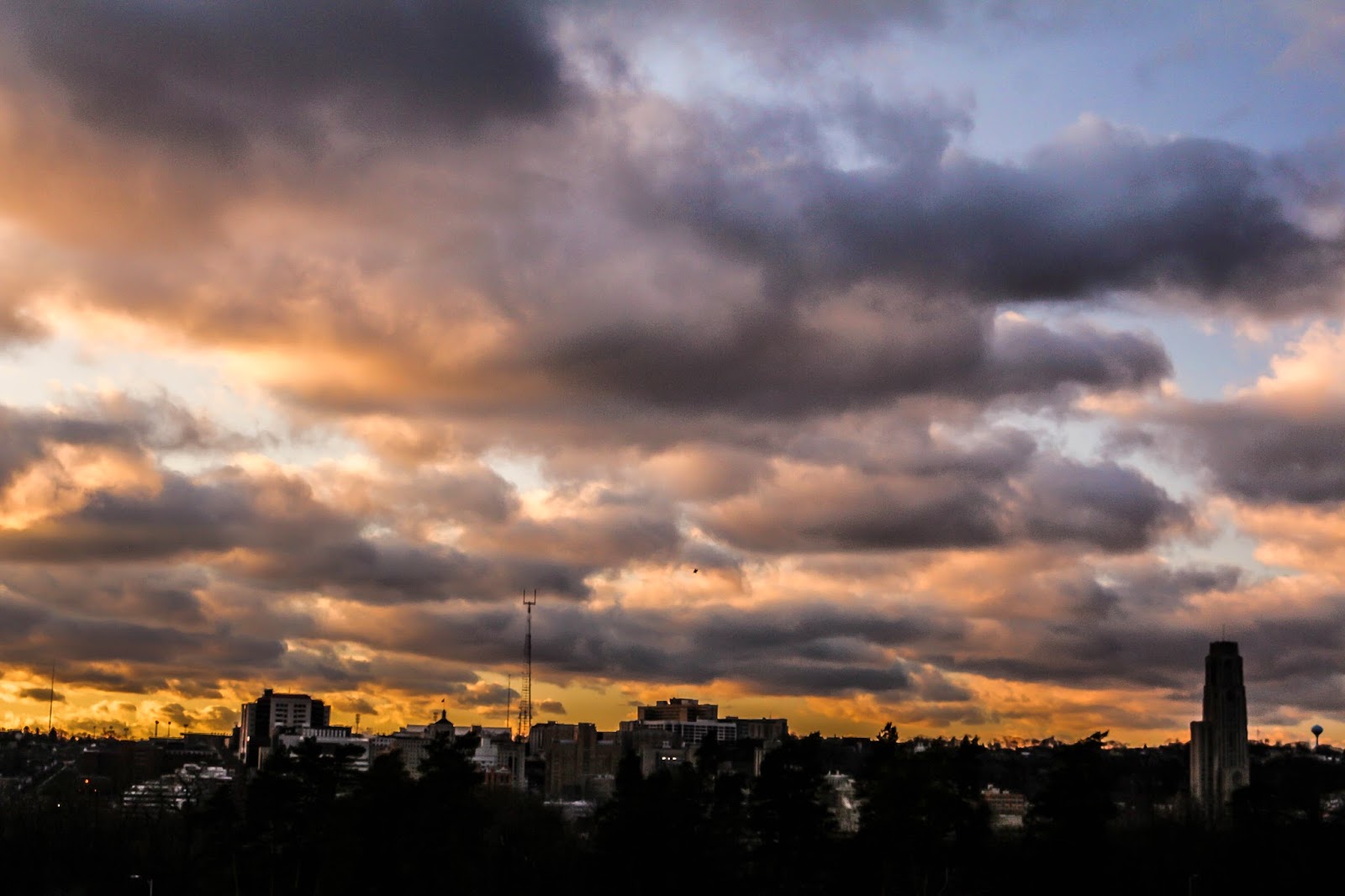 With a sprawling view of the Western sky and city skyline from the Schenley Oval, the warm sunset colors meld together with a park landscape that sits in the foreground. With a wide view of the sky, plane contrails, clouds, tree limbs and skyscrapers blend together perfectly any time of year for fantastic photographs. While the Schenley Oval is my most frequented spot, it provides a new view each and every time. A massive tree sits at the top of the oval and frames the city perfectly and also serves as what I think is the best tree in the city.